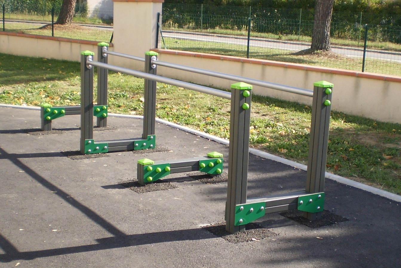 Les équipements de psychomotricité se déclinent en quatre gammes:bois ou métal à sceller ou avec des équerres et platines.